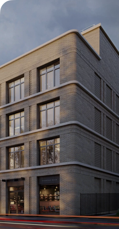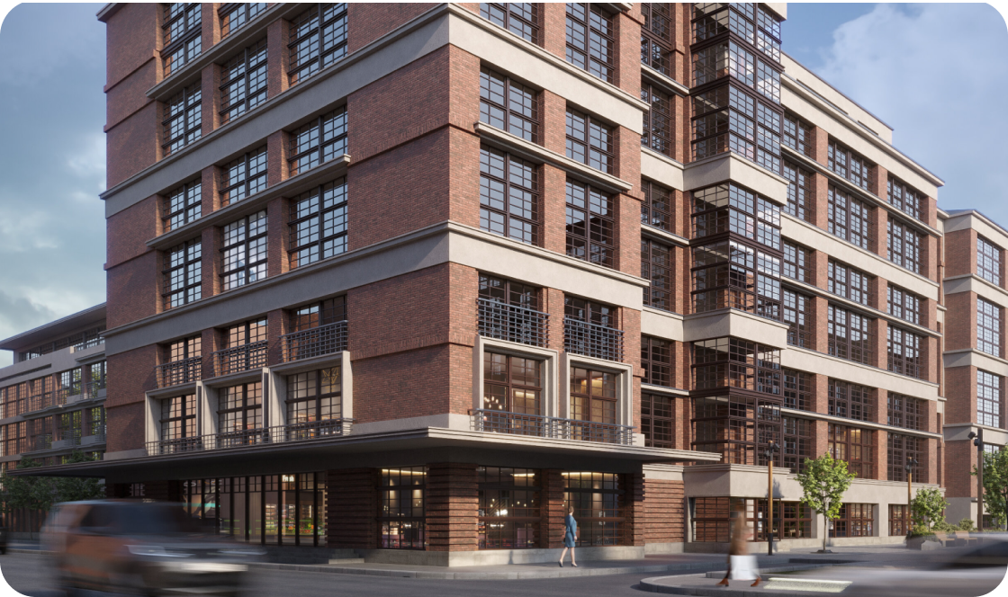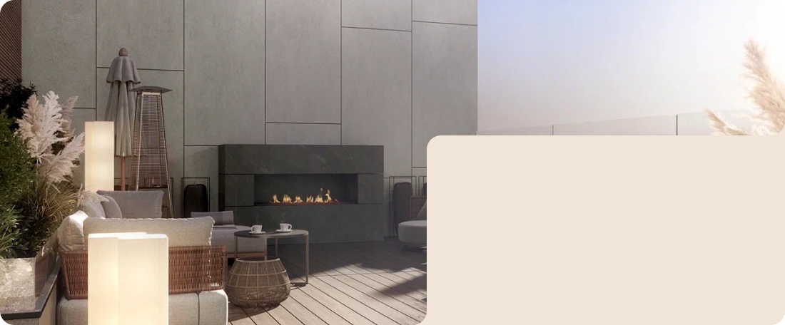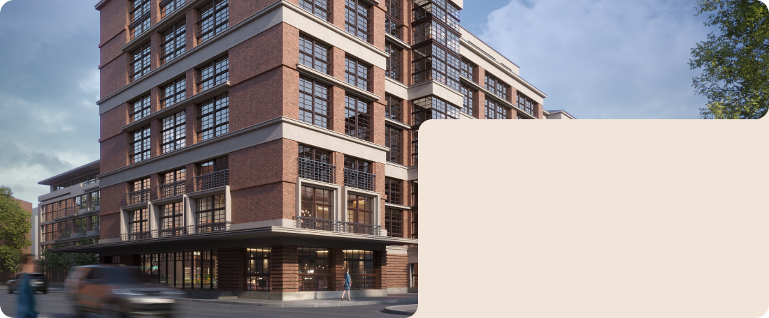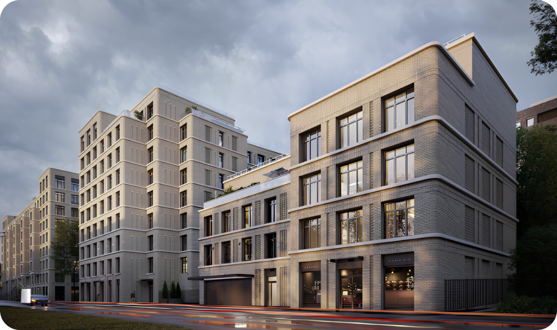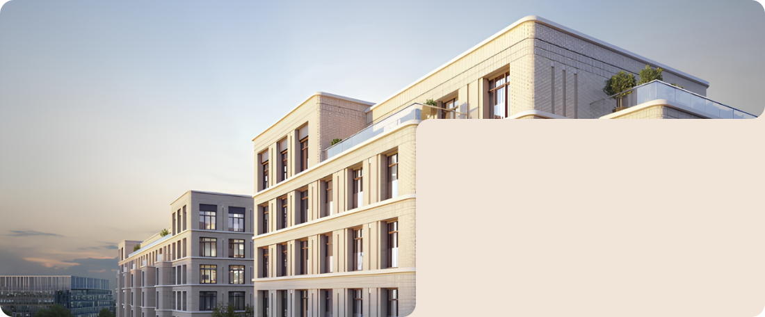 Стильные фасады из клинкерного кирпича с выступами террас. Большие окна и полное остекление пространства. Архитектурное освещение подчеркивает особенный характер жилого комплекса.