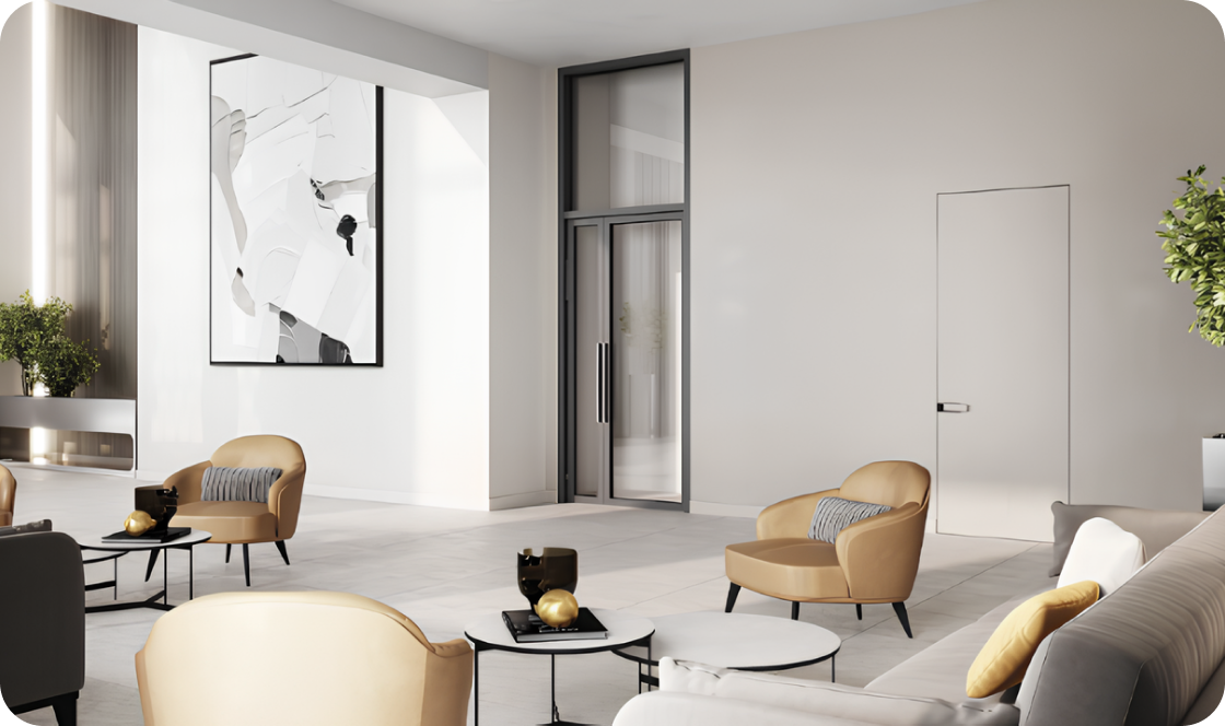 Интерьеры мест общего пользования выполнены в светлых тонах и с использованием премиальных материалов. Для максимального комфорта резидентов ЛДМ в функционирует консьерж-сервис уровня «люкс» благодаря которому все запланированные бытовые задачи будут выполнены в срок.
