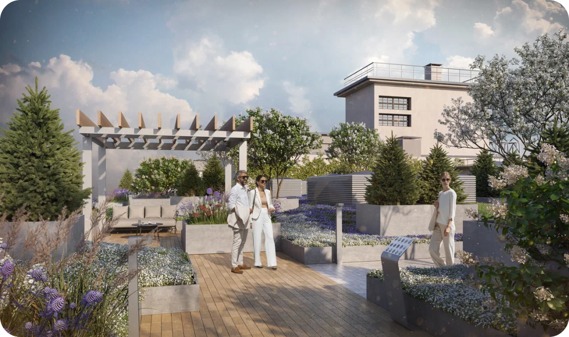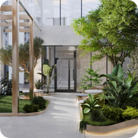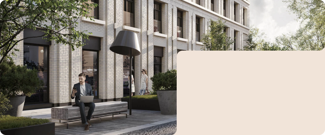 Здесь есть двор-парк без машин, где дети могут играть, а вы отдыхать. Фитнес-клуб и wellness-центр, чтобы поддерживать баланс между работой и личной жизнью. Подземный паркинг с зарядными устройствами для электромобилей и удобным распознаванием номерных знаков, кафе и амфитеатр.