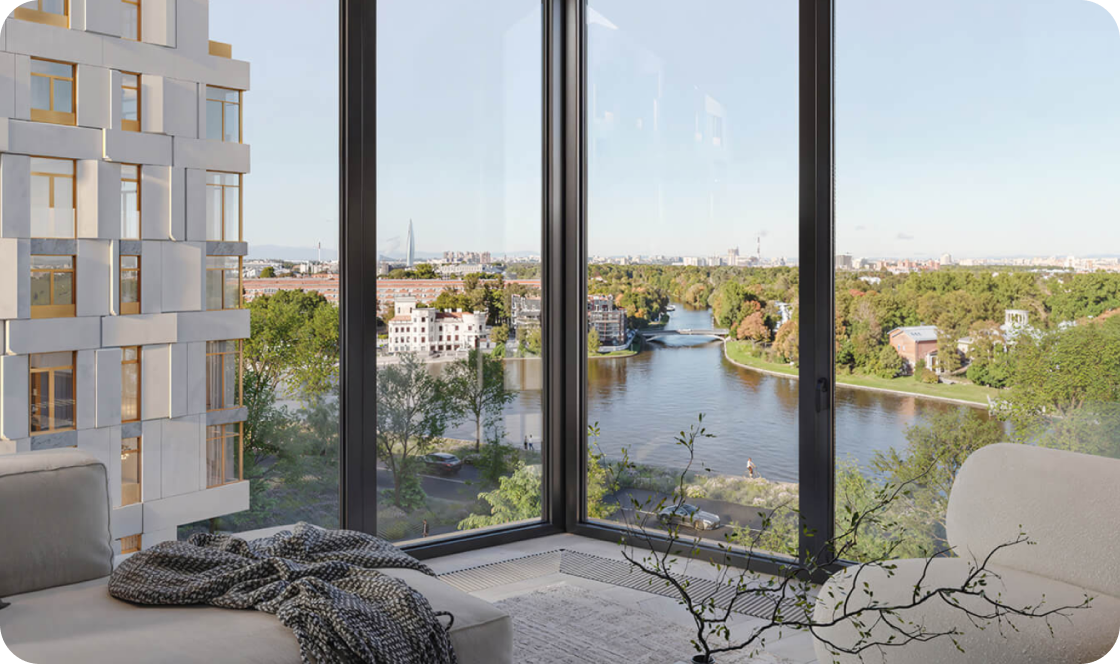 Большие алюминиевые окна, питьевая вода из-под крана, диджитализация ключевых процессов (домофония, телеметрия, видеонаблюдение). Бесконтактный свободный доступ на территорию.